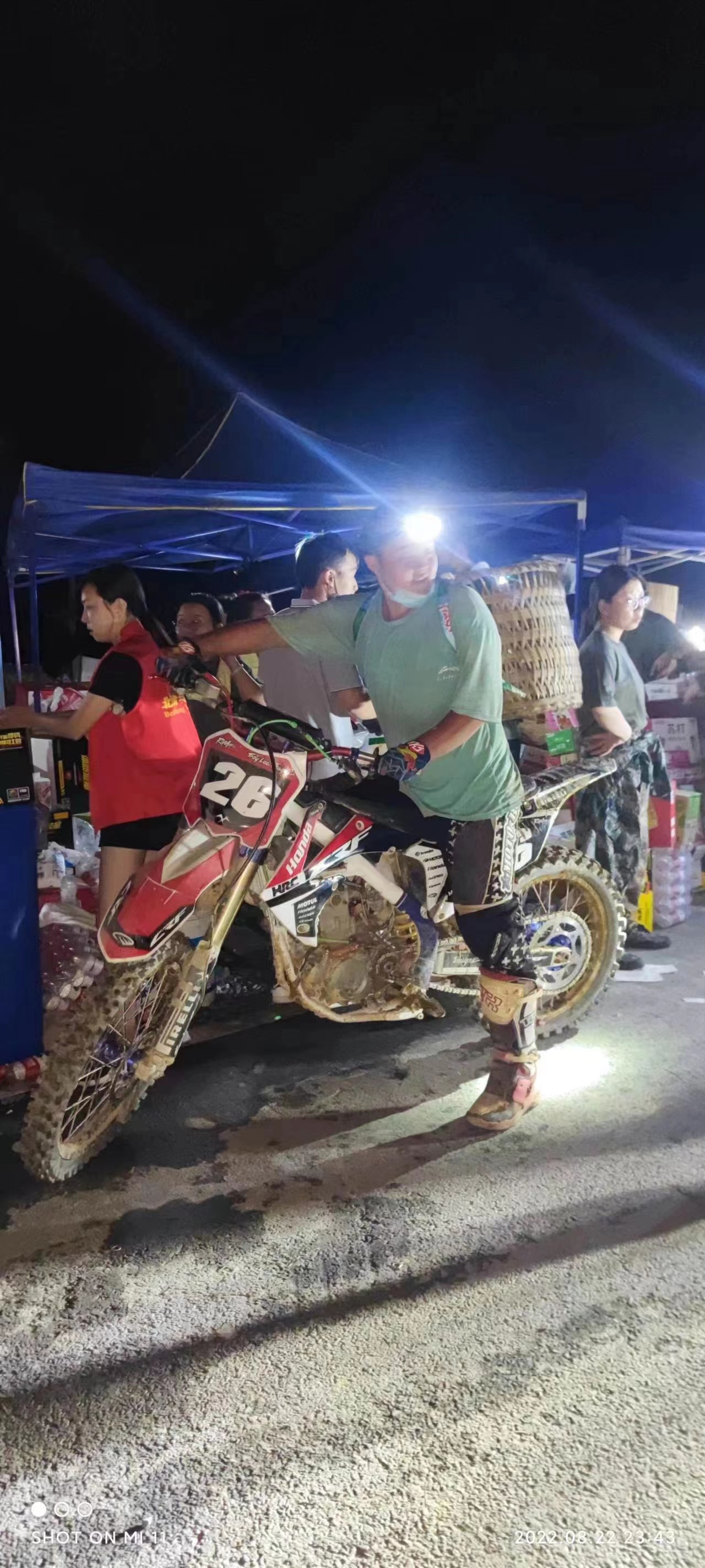 同行的摩友拍下了这一幕,视频里,摩友打趣地问道:“龙麻子,你这个视频发出去要遭笑话哦”。龙杰靠坐在摩托车上,喝了一口水,勉力笑着回应:“从昨天下午1点钟干到现在,现在好多点了我都不晓得”。