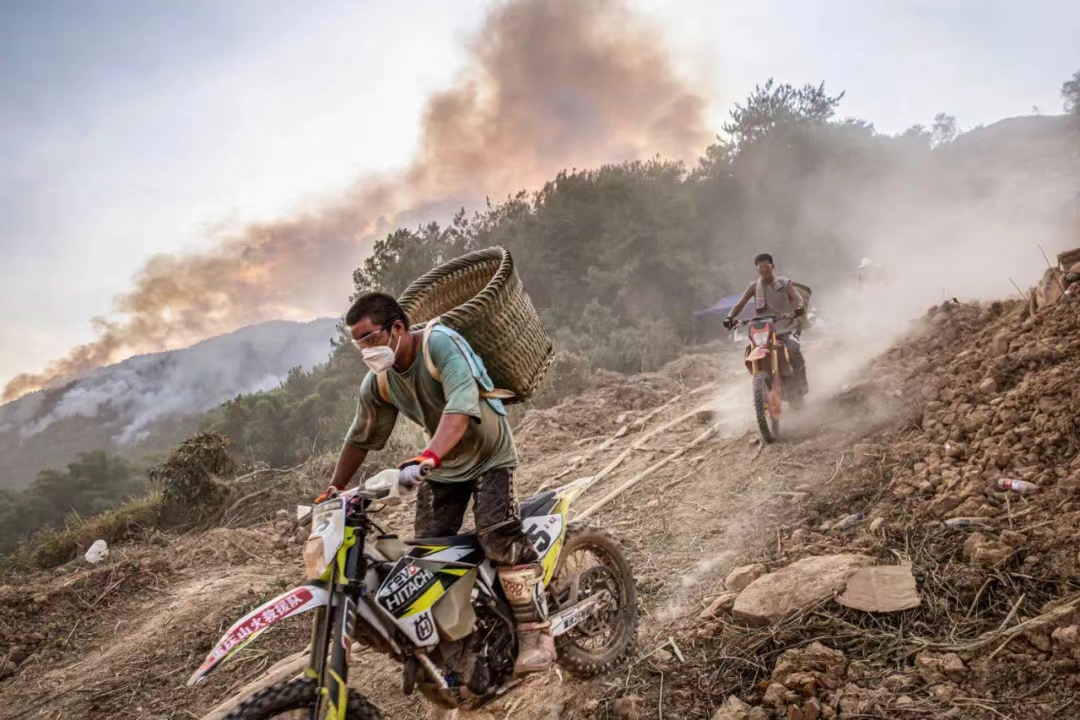 时间倒回到2022年8月21日晚,地处缙云山脉的重庆北碚区歇马街道虎头村发生山火。龙杰在手机上看到消息后,心里跟着着急起来,得知现场需要大量摩托车运送物资,他没有犹豫,第二天上完早班便请了假,回家把电瓶车换成越野摩托,马不停蹄地赶到虎头村。