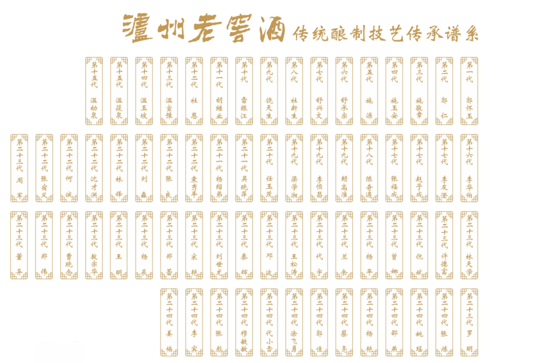 巴蜀佳酿,渊源流长。作为“中国四大名酒”和特曲品类开创者,泸州老窖同样拥有深厚历史文化底蕴:泸州老窖特曲诞生于公元1324年,是特曲品类开创者。从泸州老窖酒传统酿制技艺第一代传承人郭怀玉首创“甘醇曲”,酿造出我国第一代大曲酒至今,泸州老窖特曲历经698年、24代人无断代传承,勘定了中国浓香型白酒标准。