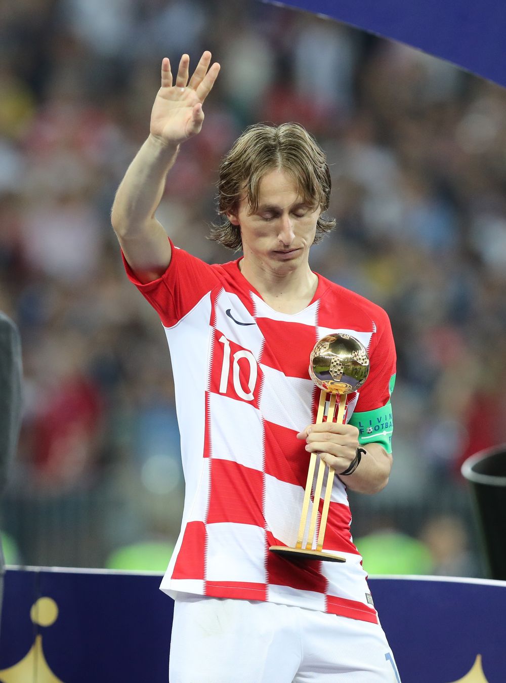资料图:获得俄罗斯世界杯金球奖的克罗地亚队球员莫德里奇在颁奖仪式上(2018年7月15日)。新华社记者 杨磊 摄