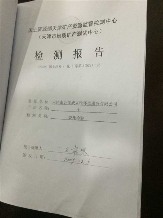 2009年12月5日,国土资源部天津矿产资源监督检测中心检测报告表明:含多氯联苯存放点表层土壤和深层土壤未超过国家规定含多氯联苯污染控制标准(GB13015-91)。