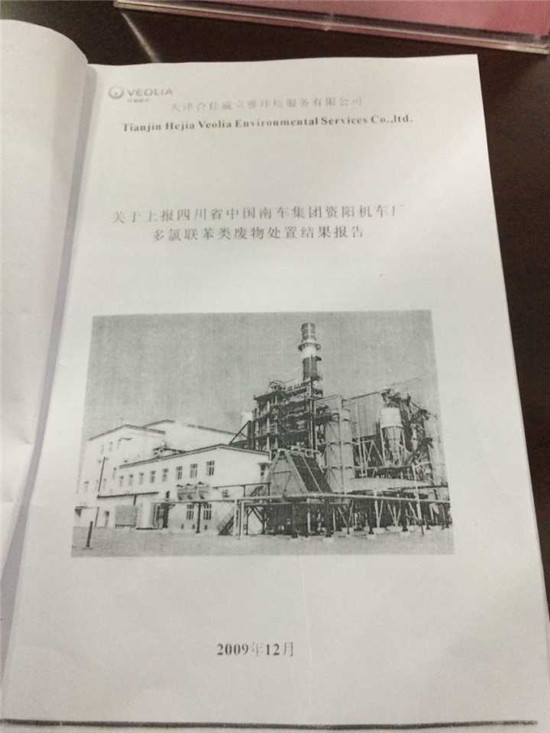 2009年9月,经逐级申报,四川省环保局协商天津市环保局同意后,委托天津合佳威立雅环境服务有限公司安全转运处置含多氯联苯电容器。
