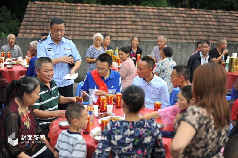 下午5点30分,刘波家里22桌的坝坝宴热热闹闹地摆开,乡里乡亲们一起用资阳人的方式迎接刘波回家。