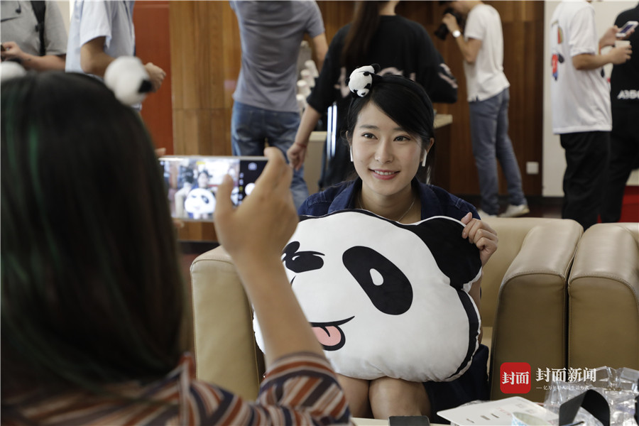 打造熊猫主题休息厅,熊猫抱枕软萌舒适,从值机到登机,一路上还有“熊猫人”向旅客致意,互动拥抱。