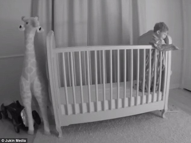 这段画面由孩子卧室的摄像头拍下,画面显示,关灯后,孩子从床上爬起来站在床边。
