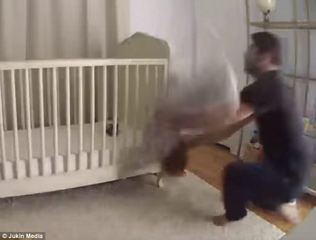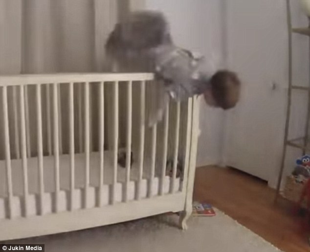 看到孩子醒了,这名父亲走进卧室查看,刚打开卧室灯,孩子突然动起来,爬上婴儿车围栏,从围栏翻下,刹那间男婴失去平衡,头朝地从围栏栽下。
