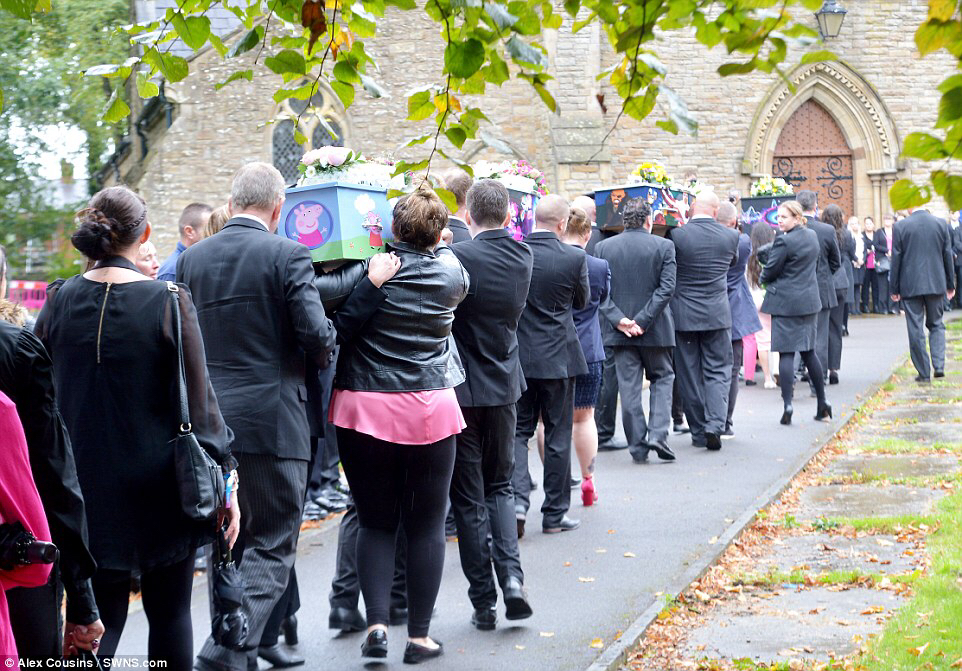 学校里的朋友、消防员和家人都沉浸在悲痛之中,他们把孩子们的棺材抬出教堂,然后一起埋葬。
