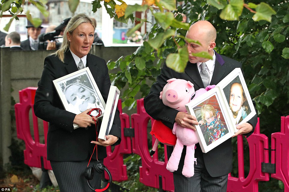 数百名悲痛欲绝的吊唁者身穿蓝色和粉色衣服,走上大曼彻斯特沃克登街头为孩子们送行。