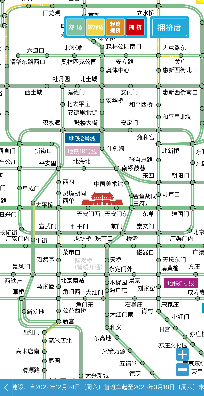 1月5日9时许,北京地铁线路拥挤度情况。图片来源 北京地铁