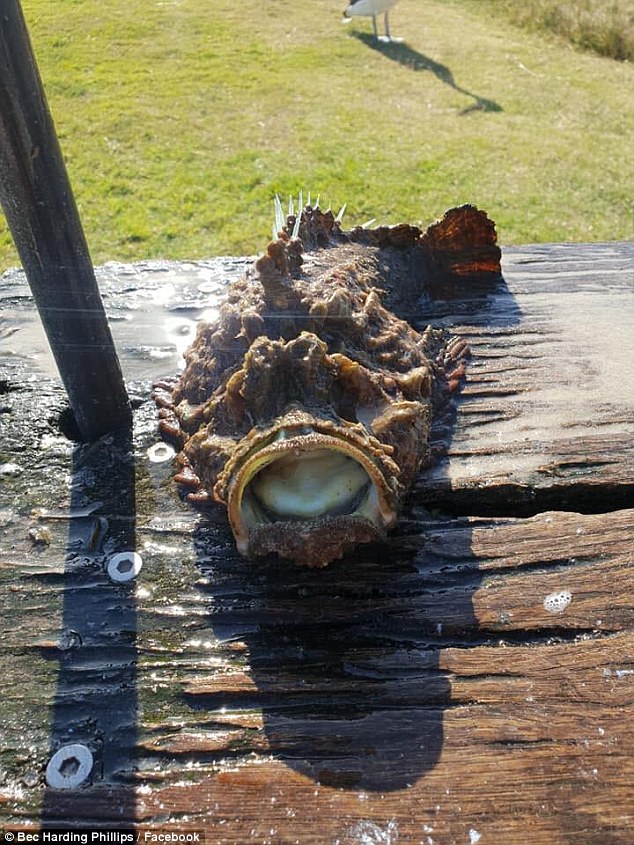 据当地媒体报道,这头重达6公斤、长50厘米的怪鱼被拖上岸,经验证,这只巨兽是一只剧毒无比的石头鱼。