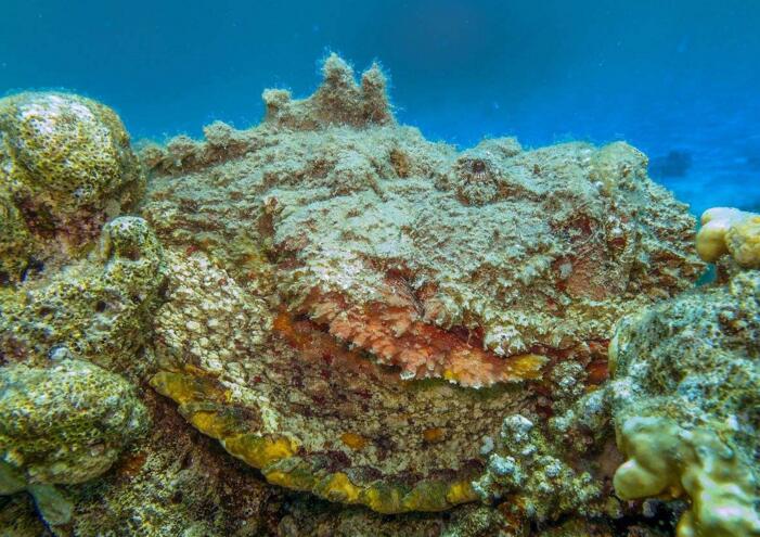 “这是我见过的最大的石头鱼,”菲利普斯说,“它至少有50厘米长。我看着它,心想,如果你站在上面,你就会陷入一个痛苦的世界。”