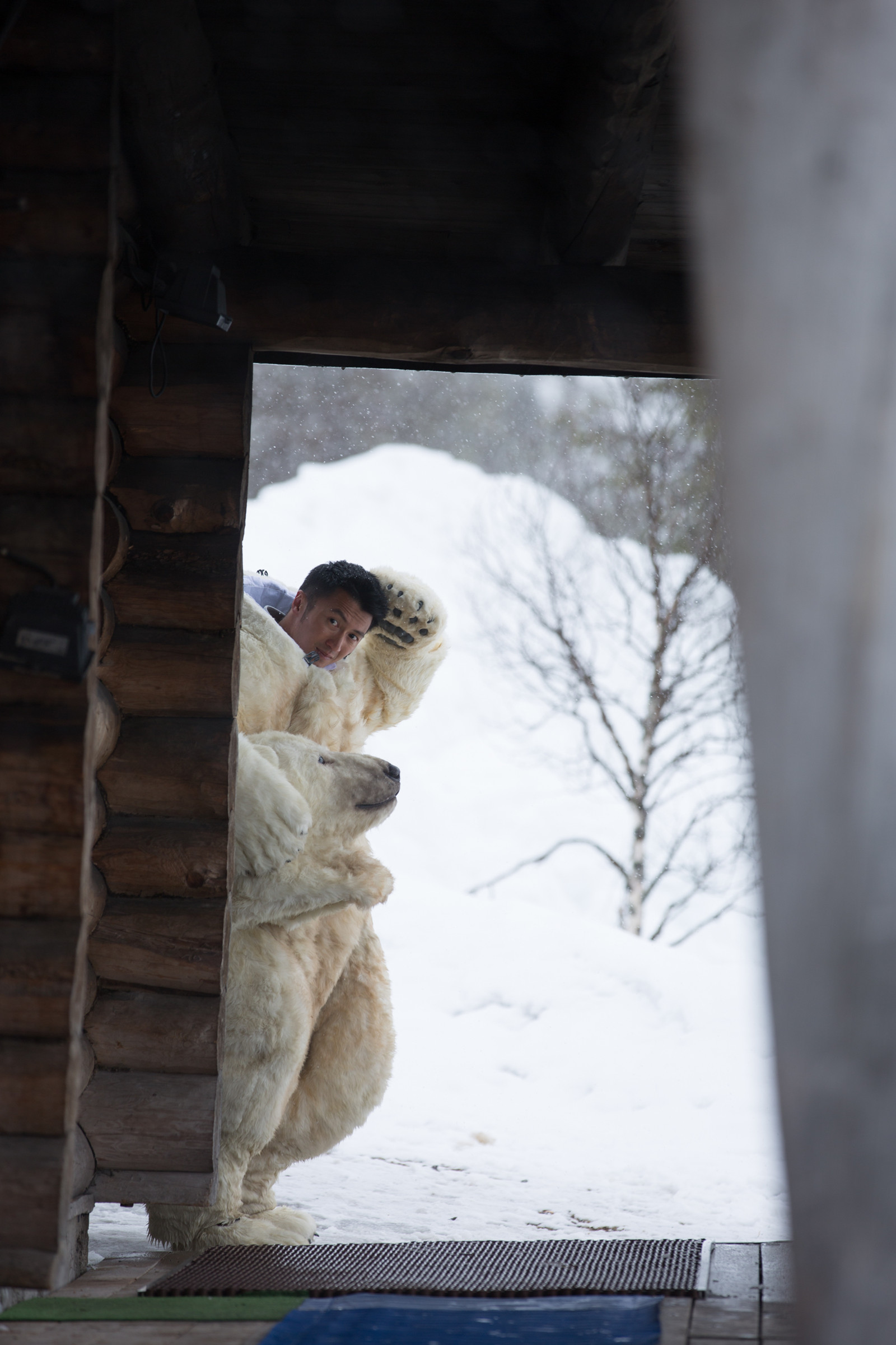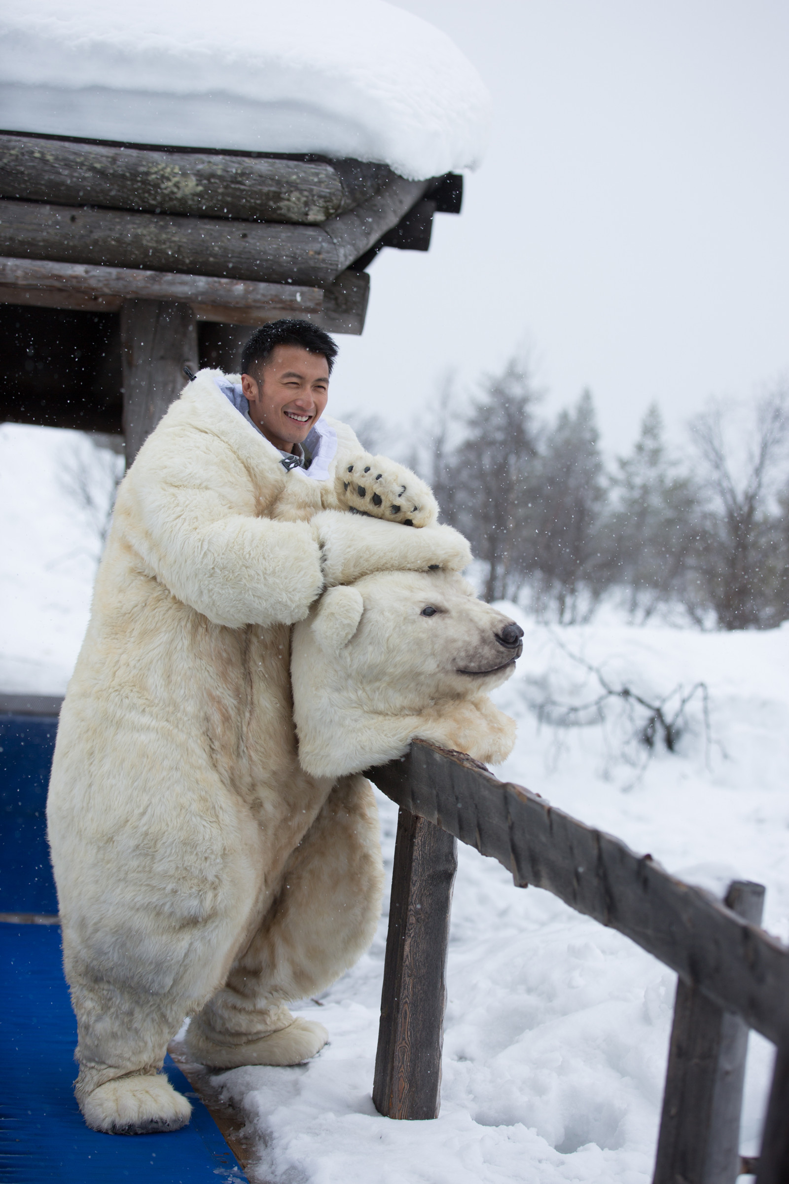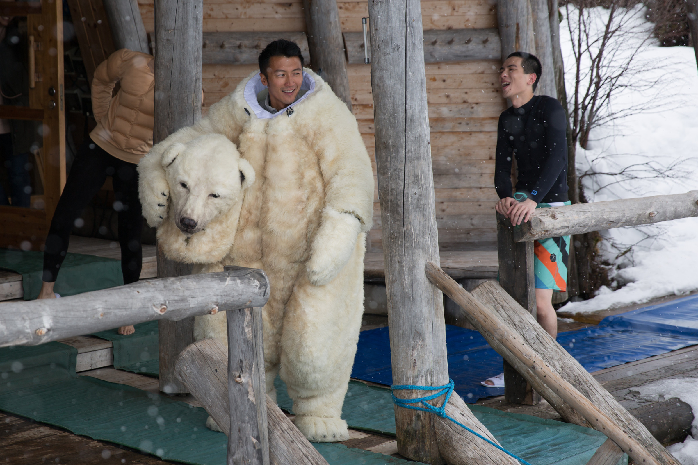 今日《十二道锋味3》剧组曝光了一组谢霆锋扮熊的照片。在芬兰蒸桑拿时,谢霆锋调皮地穿上熊服突然现身,将萧敬腾霍汶希吓得瞬间四处逃窜,而困在水中的芬兰比基尼美女更被吓得花容失色。
