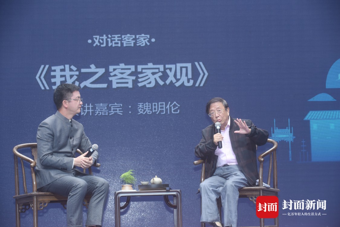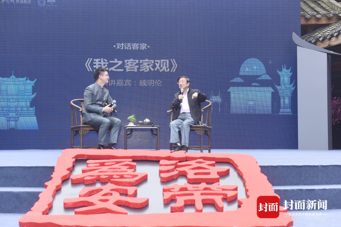 开幕式过后,魏明伦在“首届洛带客家文化节暨对话客家·名人讲堂”上开讲。他以《我之客家观》为题,与主持人展开对话,讲述他对客家文化的理解和研究。在他看来,客家是“特殊民系,优秀群族”。