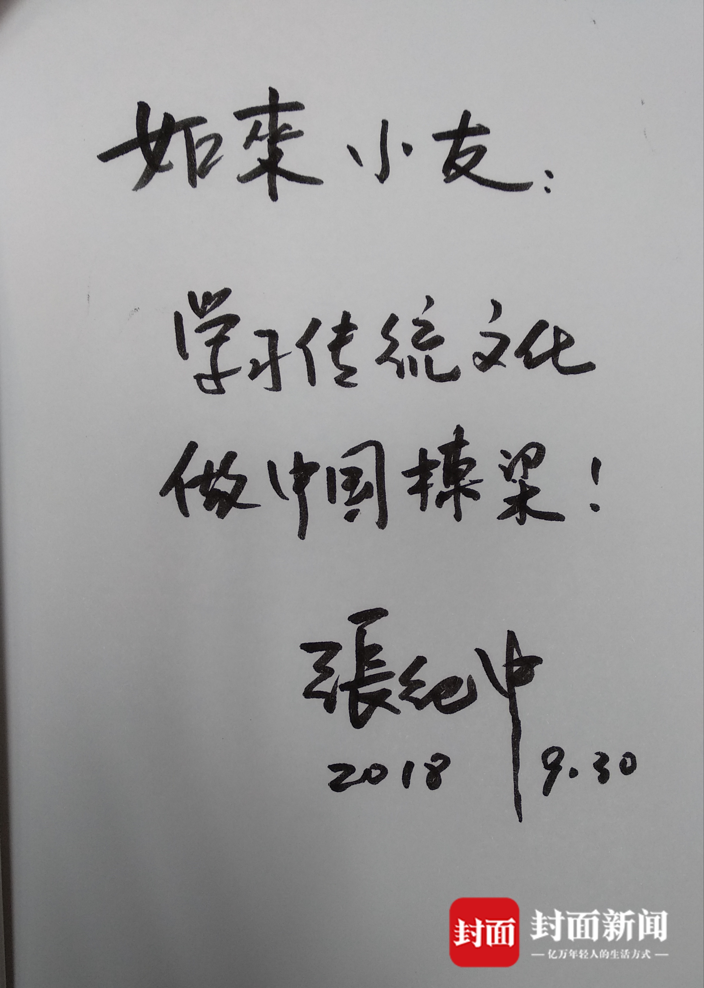 首届洛带客家文化节上,魏明伦还见到了自己的老朋友张纪中,“十几年前,我们在‘华山论剑’上见过。”再次相见,两位老友相谈甚欢,张纪中还专门为魏明伦题字祝福:“昨日华山论剑,今朝再逢洛带,祝魏大师健康。”他还为魏明伦孙子魏如来签字留言“如来小友:学习传统文化,做中国栋梁。”