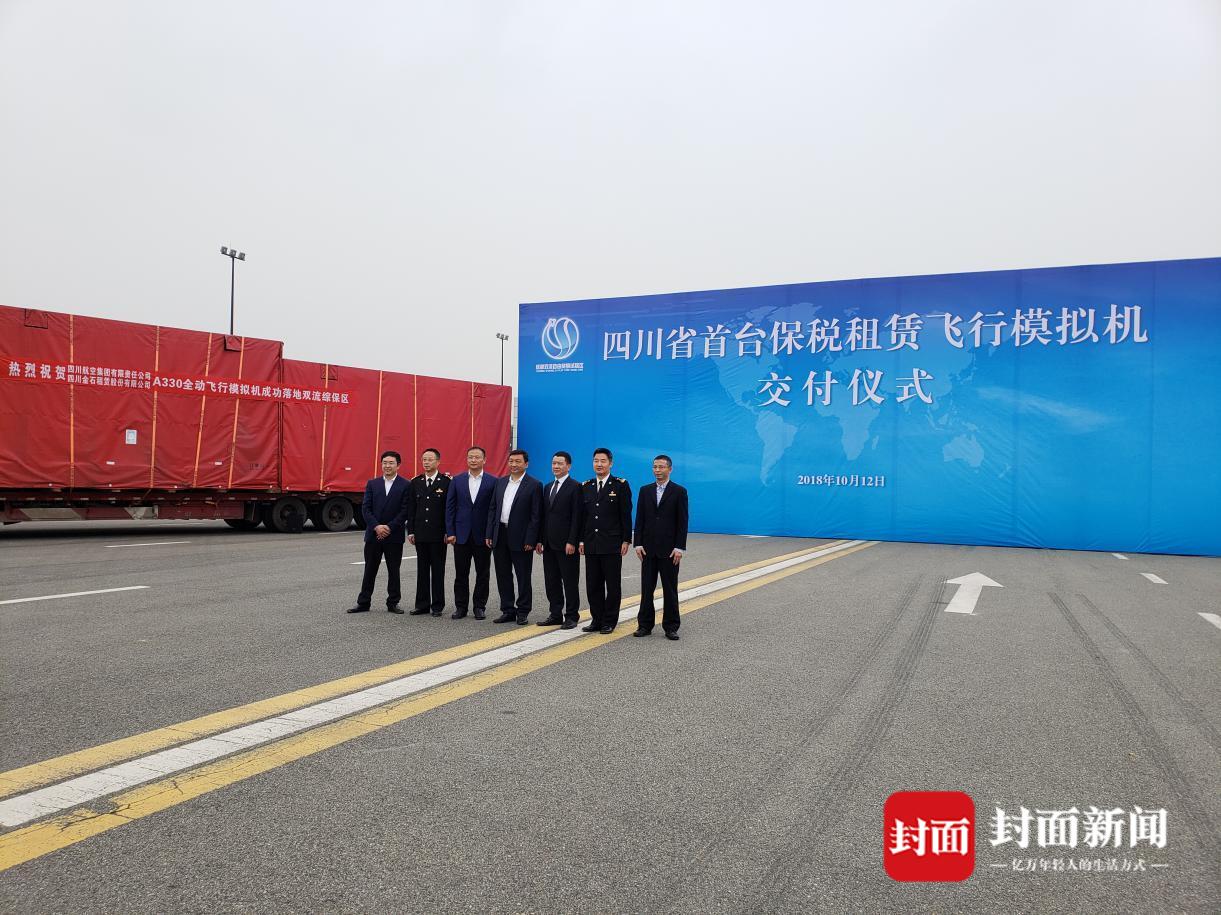 2018年10月12日,四川省首台保税租赁飞行模拟机交付仪式在成都双流自贸试验区内的双流综合保税区举行。这台飞行模拟机来自英国,将分5年租赁给四川航空集团有限责任公司,为中国培养飞行员而“服役”。