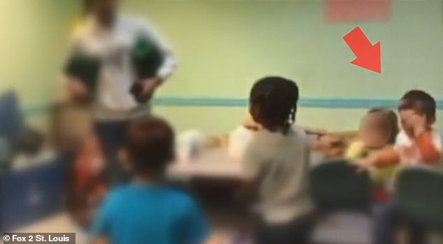 在视频中,默西尔4岁的儿子一遍又一遍地擦脸,托儿所一名老师走向他,对他说“你很好”,然后拍拍他的背,让他过去和其他孩子打架。