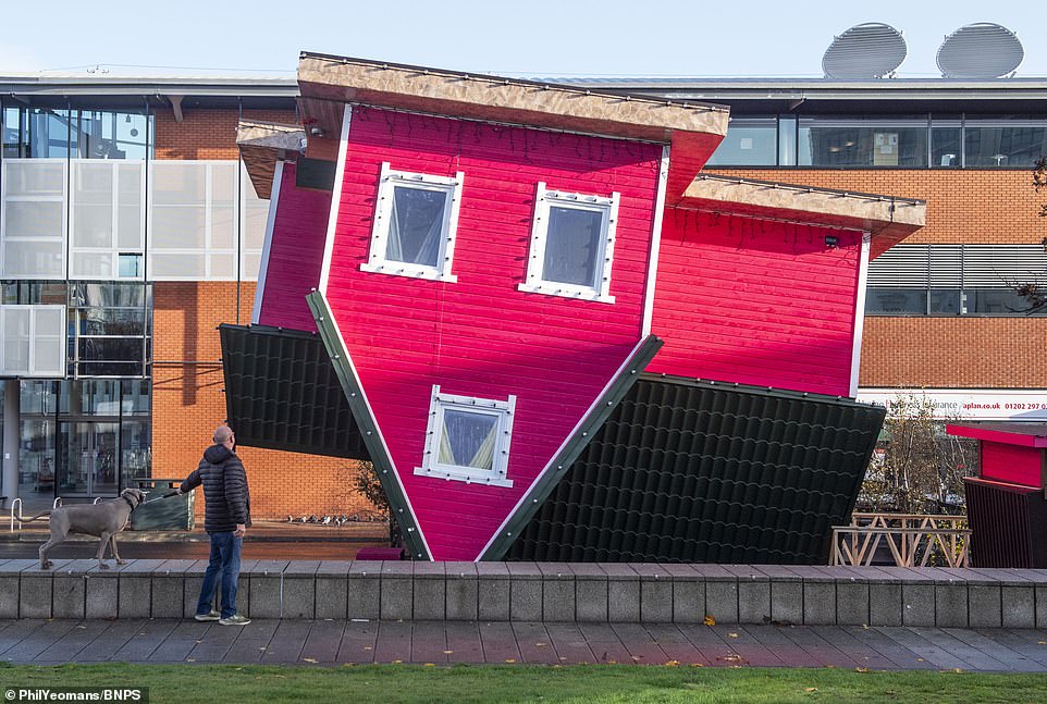 《每日邮报》11月11日报道,昨日,英国首个“倒立屋”对公众开放。这座奇特的建筑坐落在英国多塞特郡伯恩茅斯。
