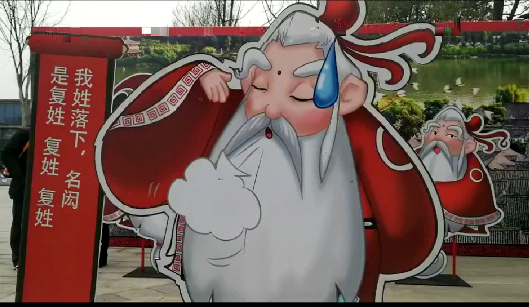 “拜春节之源,到阆中过年”。一走进博览园,就是年味十足的主题门。博览园里,四处“站立”着春节老人的画像立牌。立牌上,以春节老人的口吻,印着趣味十足的话语:“ 我姓落下,名闳,是复姓、复姓、复姓。”“圣诞老人能发红包吗?春节老人能!”“ 阆中是一座你来了,也不一定能看懂的古城。”“看到你们现在都不会用浑天仪,我就放心了。”