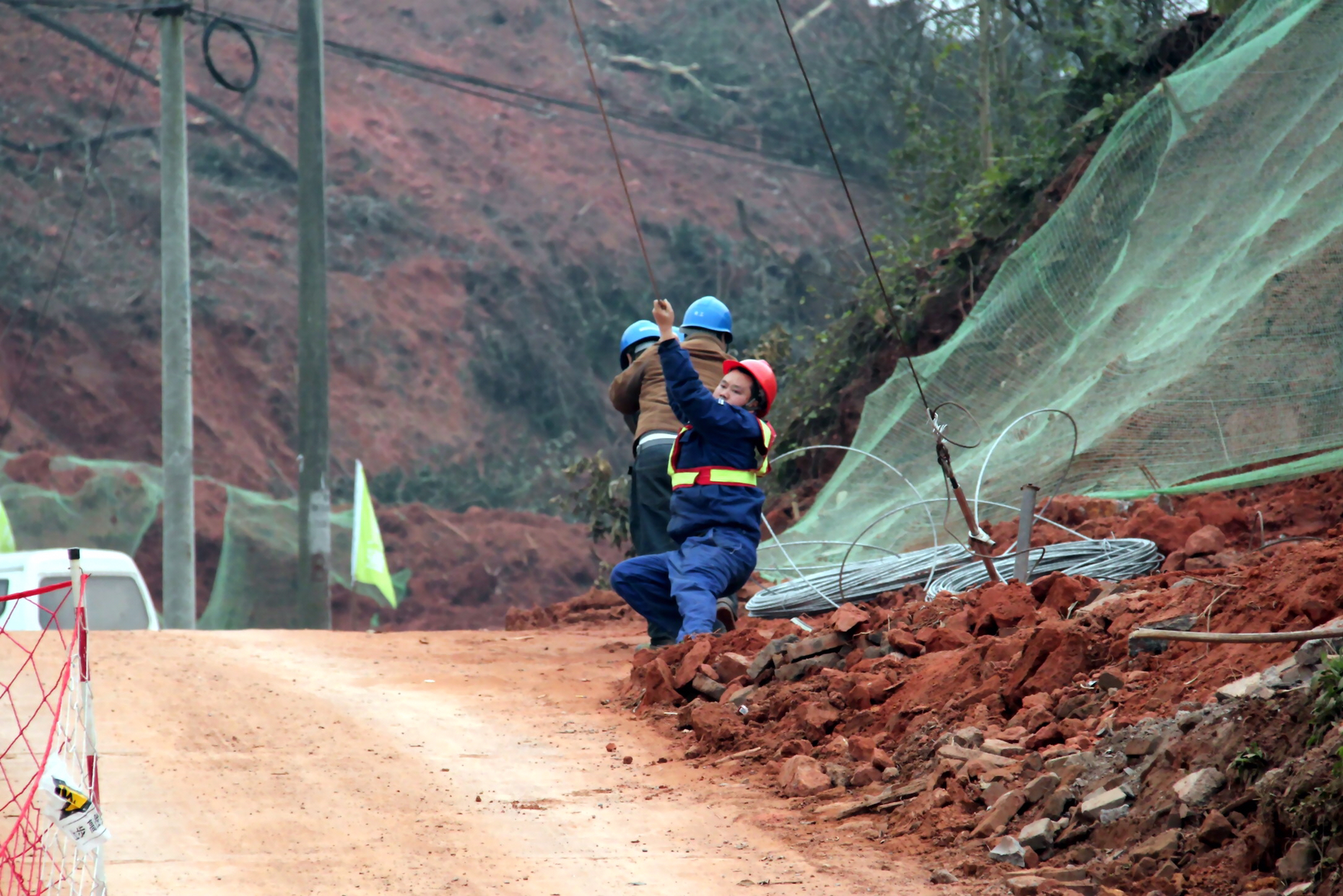 “电工师傅们加班加点拆迁电线,以后机场‘快速通道’通了,就更便捷了。!”2月20日,家住宜宾市翠屏区宗场镇龙村——新机场“快速通道”征地搬迁户凌先生说。当日,国网宜宾江北供电公司人员在新机场“快速通道”东连线进行电力迁改施工。