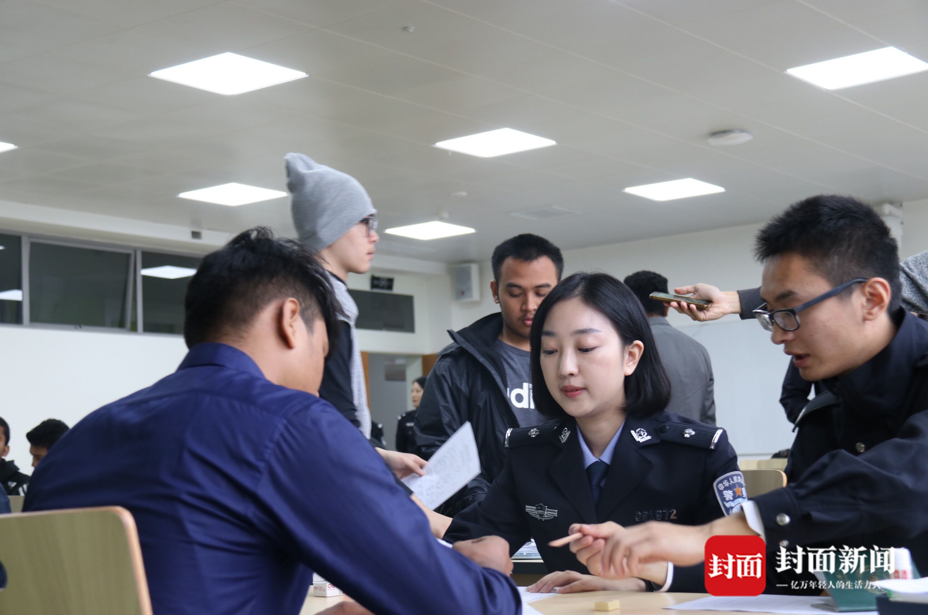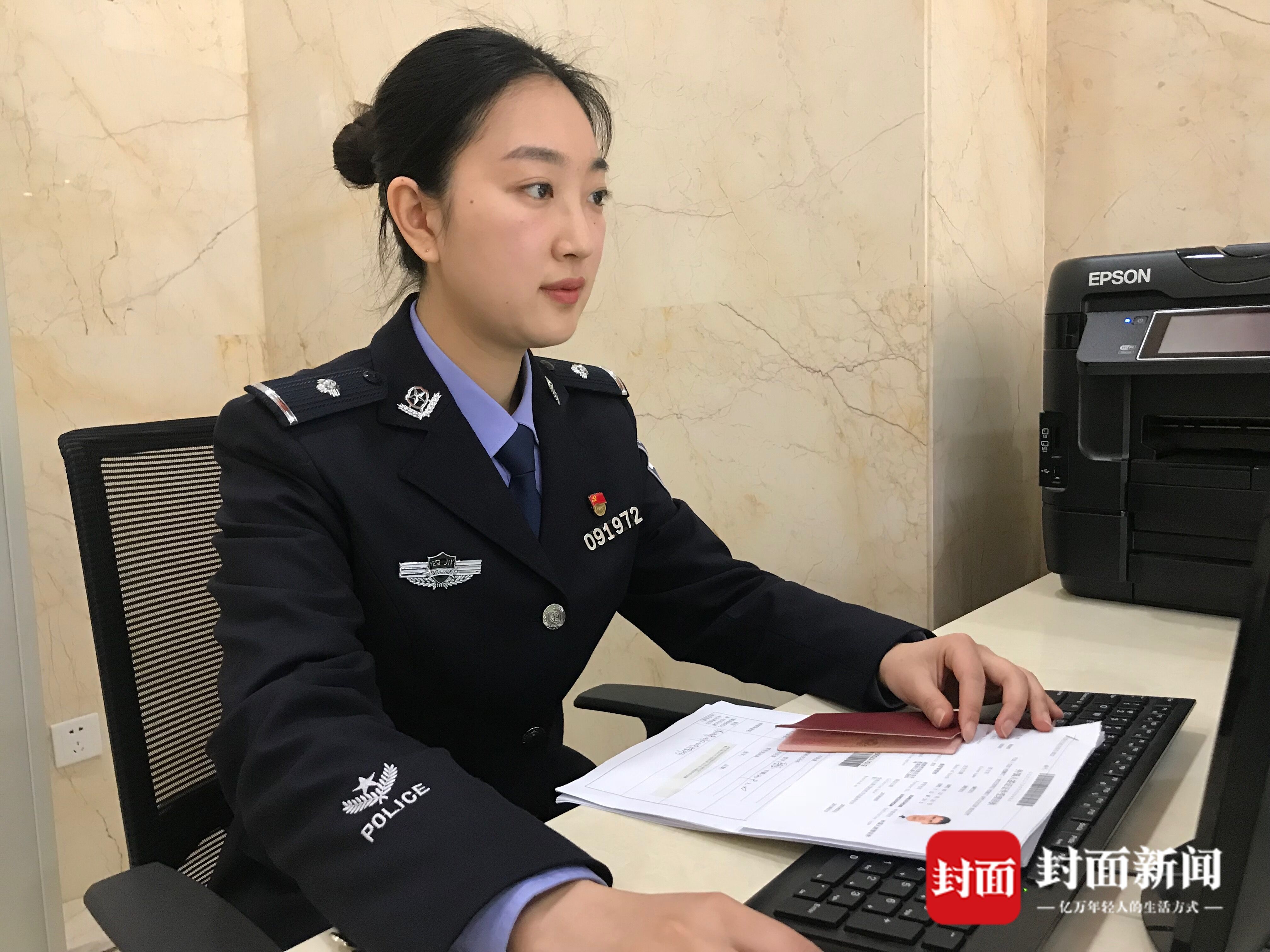 “Can you help me?”“ Yes,what can I do for you?”四川成都双流自贸区出入境办证窗口上,这是出现频率最高的一段对话之一。90后民警赵丽娟就是一名专职服务该岗位的民警。鹅蛋脸、大眼睛、长睫毛,一口流利的英语和诚恳的服务态度,让她收获了大批粉丝,“歪果仁”纷纷喊她“娟娟”。