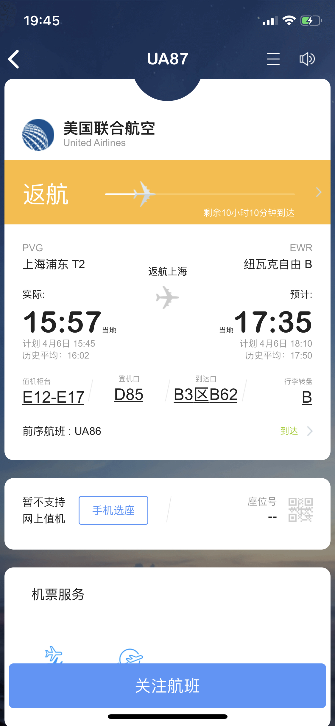 据新浪微博FATIII发布消息,4月6日,美国联合航空由浦东飞往纽瓦克的 UA87航班由浦东机场起飞后不久,传由于引擎故障,返航。该航班由波音777-200ER 执飞,注册号为 N78003,机龄20年。据飞常准数据显示,该航班已落地,飞机自行脱离跑道。