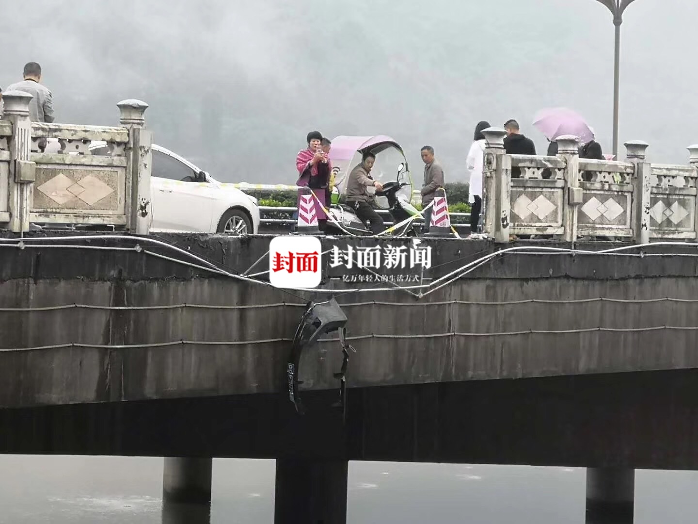 5月4日凌晨,雅安市雨城区汉白玉大桥上发生一起车祸,一辆轿车撞断了桥梁护栏。根据群众拍摄的视频显示,大桥护栏已被撞断了几节,大桥外侧还遗留有轿车保险杠等残损部位,疑似轿车已“飞下”大桥,冲入青衣江中。随后,这段视频迅速在网络上传播。