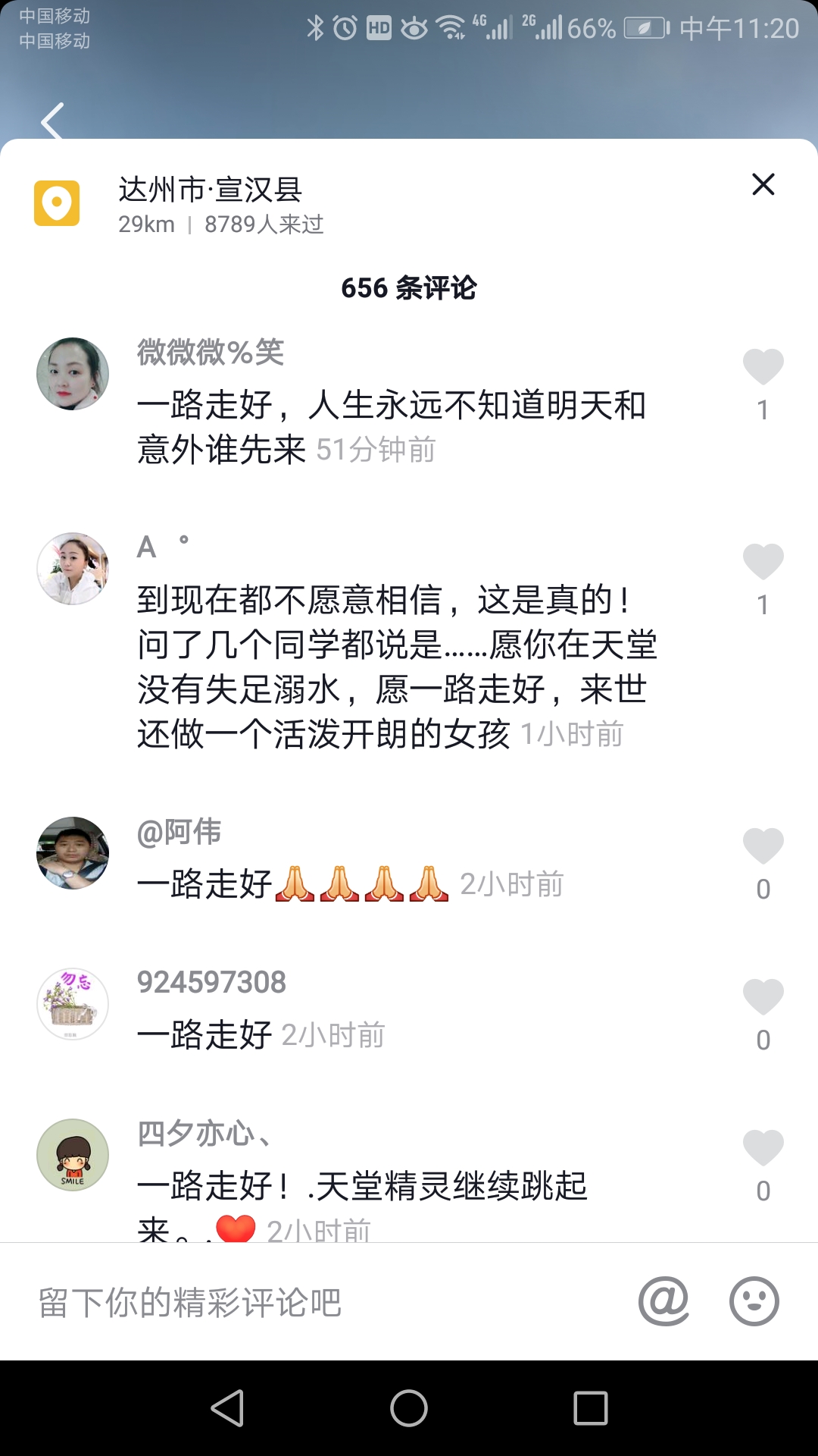 封面新闻记者在该女子抖音号上看到,她身前共发了59条抖音视频,绝大多数都是跳舞的。而最新的一条就是在网上广泛传播的这条,其点赞数达2753个,评论660条,远超平时发的视频的关注度。不少网友都在该条视频下留言,纷纷表达对年轻生命逝去的惋惜,同时愿她一路走好。