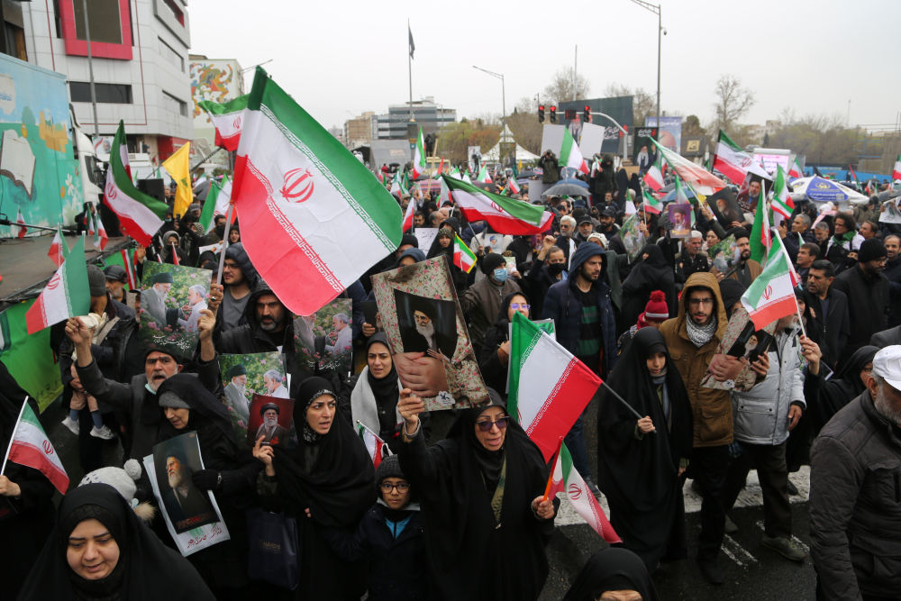 3月13日,人们在伊朗首都德黑兰参加集会。新华社发