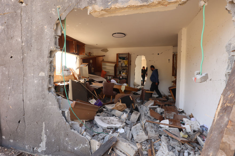 3月13日,人们在以色列北部城镇扎尔齐尔一处遭伊朗导弹袭击的地点查看。新华社发(吉尔·科恩·马根摄)