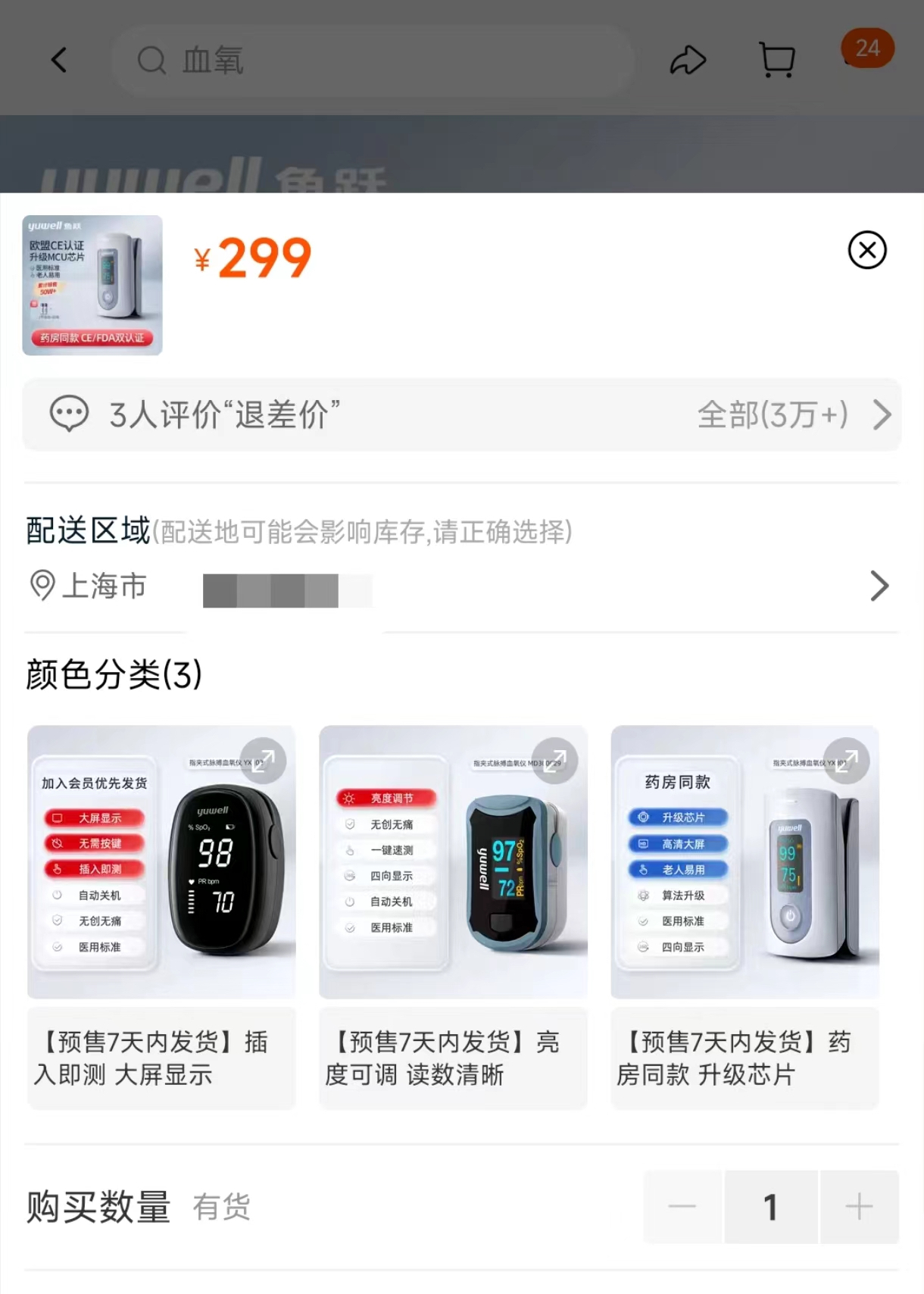去年12月底,有网友爆料鱼跃同款血氧仪“去年官网88购物节实际94元到手,最近涨到299元”引发关注,“鱼跃血氧仪乱涨价”登上热搜。