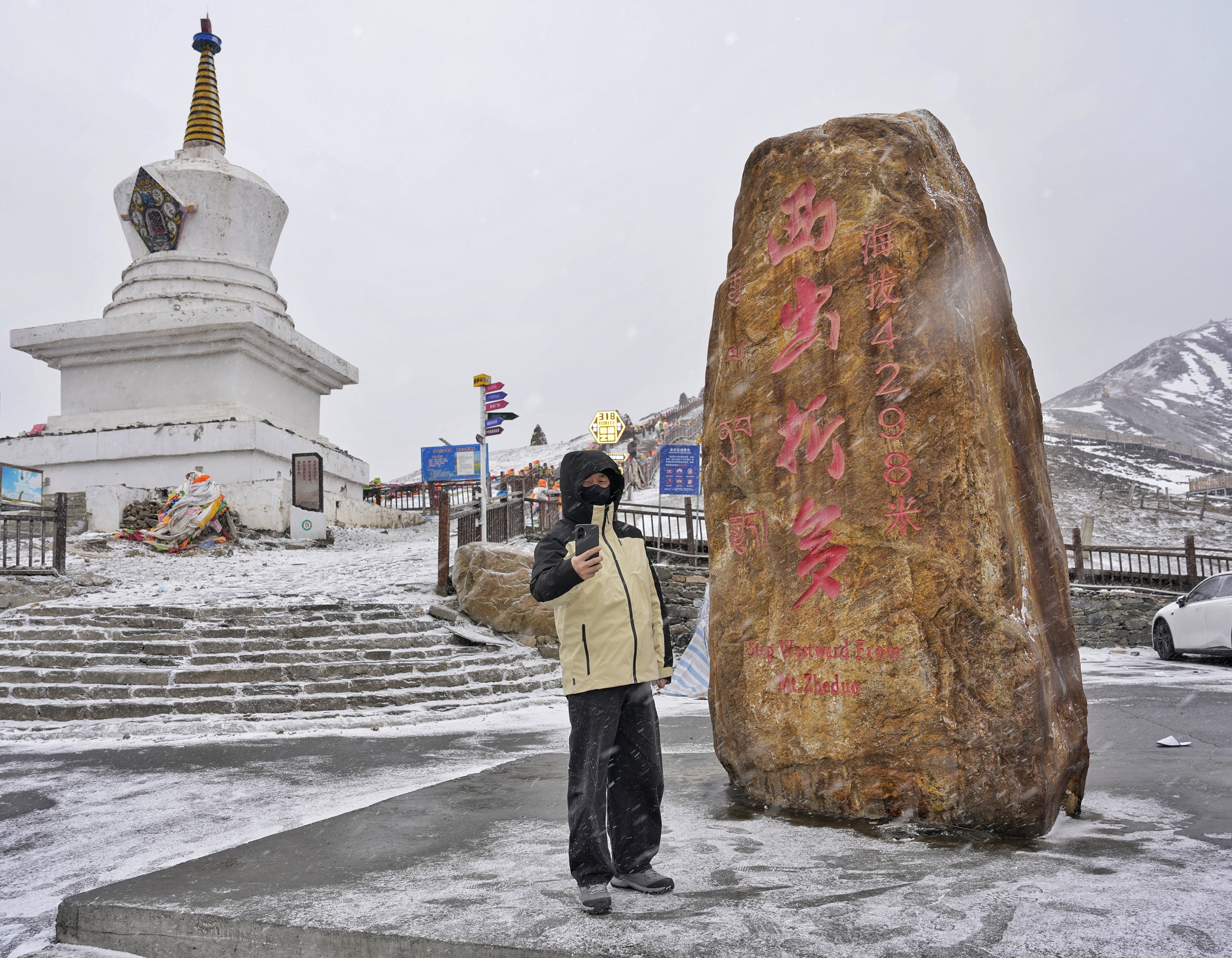 1月30日午后,记者从成都驱车近4小时沿雅康高速(雅安-康定)到达康定。此后,由国道318线盘山曲折而上,向着折多山高处攀升——这时,两侧便见得高山林立、雪峰巍峨,空中细散的雪花也迎面扑来。