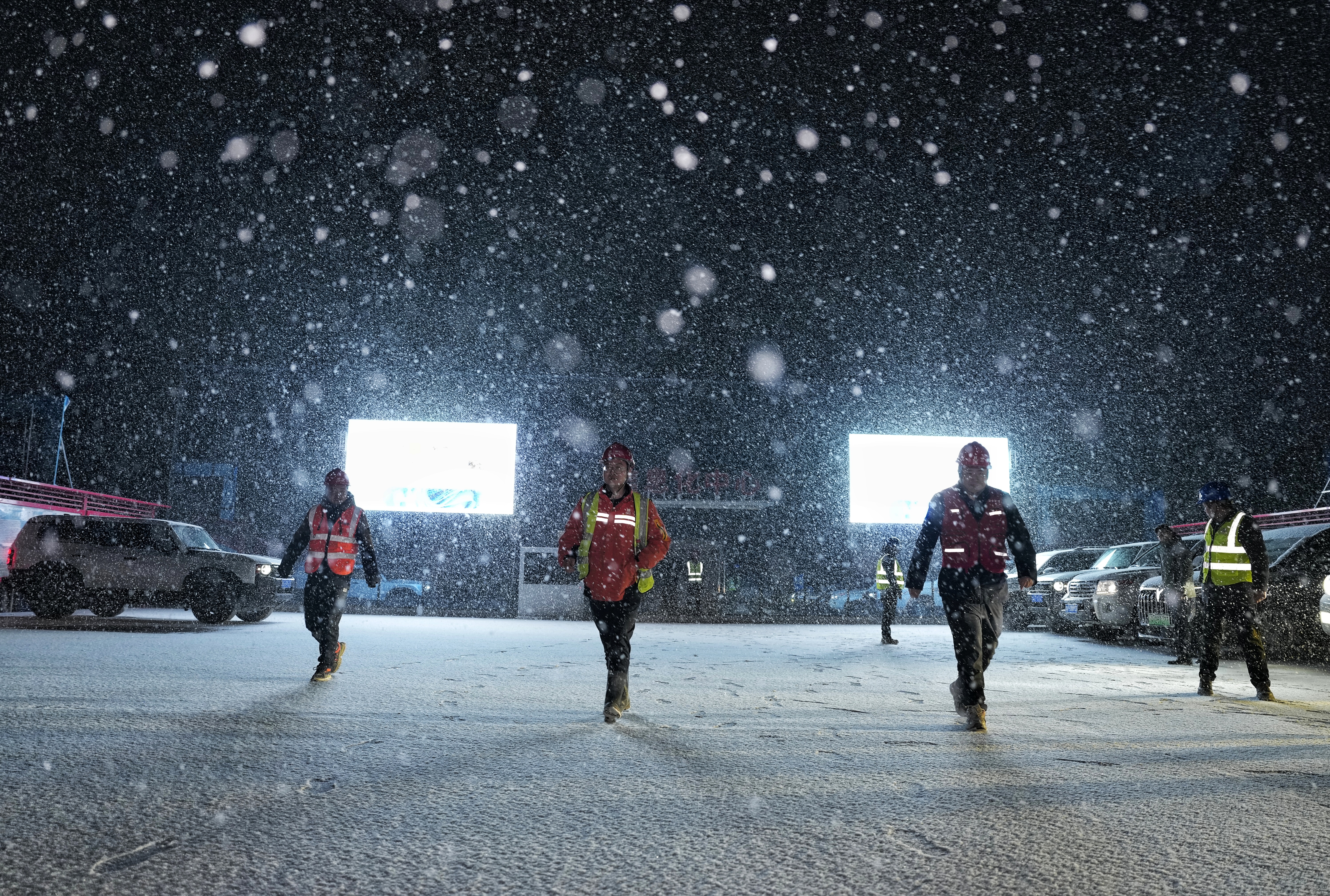 晚7点半,四川省甘孜藏族自治州境内的折多山已完全沉浸于夜幕之中。傍晚就开始飘落的雪,此时已变得更紧更密,透过隧道工地灯光,雪花在风中划出无数道飘动的白线。