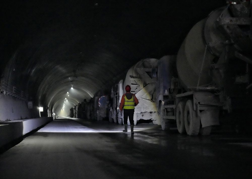 54岁的古清武是现场施工班负责人,他正忙着组织工人进行隧道二次衬砌作业。“可难了,工作3年,我负责的这条隧道才推进了400米。”这位自1993年就投身基建、参与修建过百余条隧道的“老手”,面对折多山复杂地质状况也是直挠头:“初来时高原反应还让我失眠头痛,这么难的洞子太少见!”