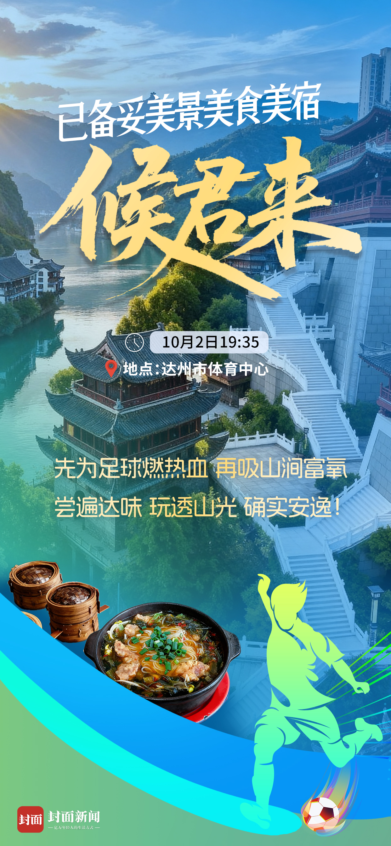 在赛前,达州文旅也是做足了功课,把自家的好东西纷纷晒出来。达州文旅也对成都放话:达州有“三美”候君来。到底哪“三美”呢?美食、美景和美宿,期待用“三美”让成都的球员和球迷到了达州有宾至如归的感觉。
