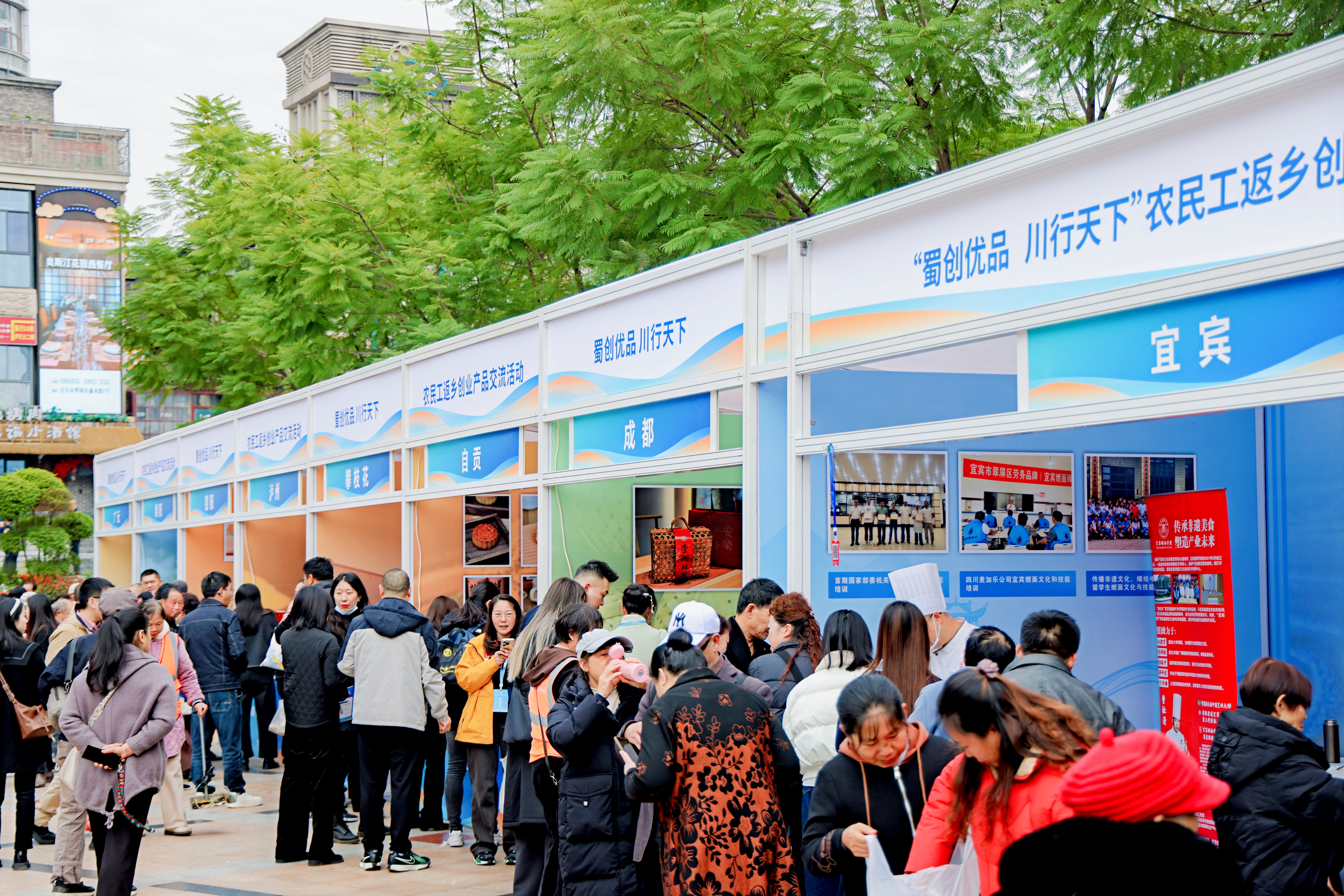 在“蜀创优品 川行天下”农民工返乡创业产品交流活动中,来自全省21个市(州)以及四川省返乡创业专业委员会的企业带来了近300种类别的特色产品,现场人气火爆。据不完全统计,参展企业总营业额超100万元,宜宾山勾勾鸡蛋、乐山马边“彝家黑妞”腊肉等特色农产品尤其受到欢迎,充分展现了四川农民工返乡创业的澎湃活力与市场潜力。此外,服务周还上线了“蜀创优品 直播带货”宜宾专场,共展示销售29个商品。活动期间举办的创业沙龙和项目巡诊为返乡创业农民工提供了思路,进一步激发了广大农民工的创业热情。
