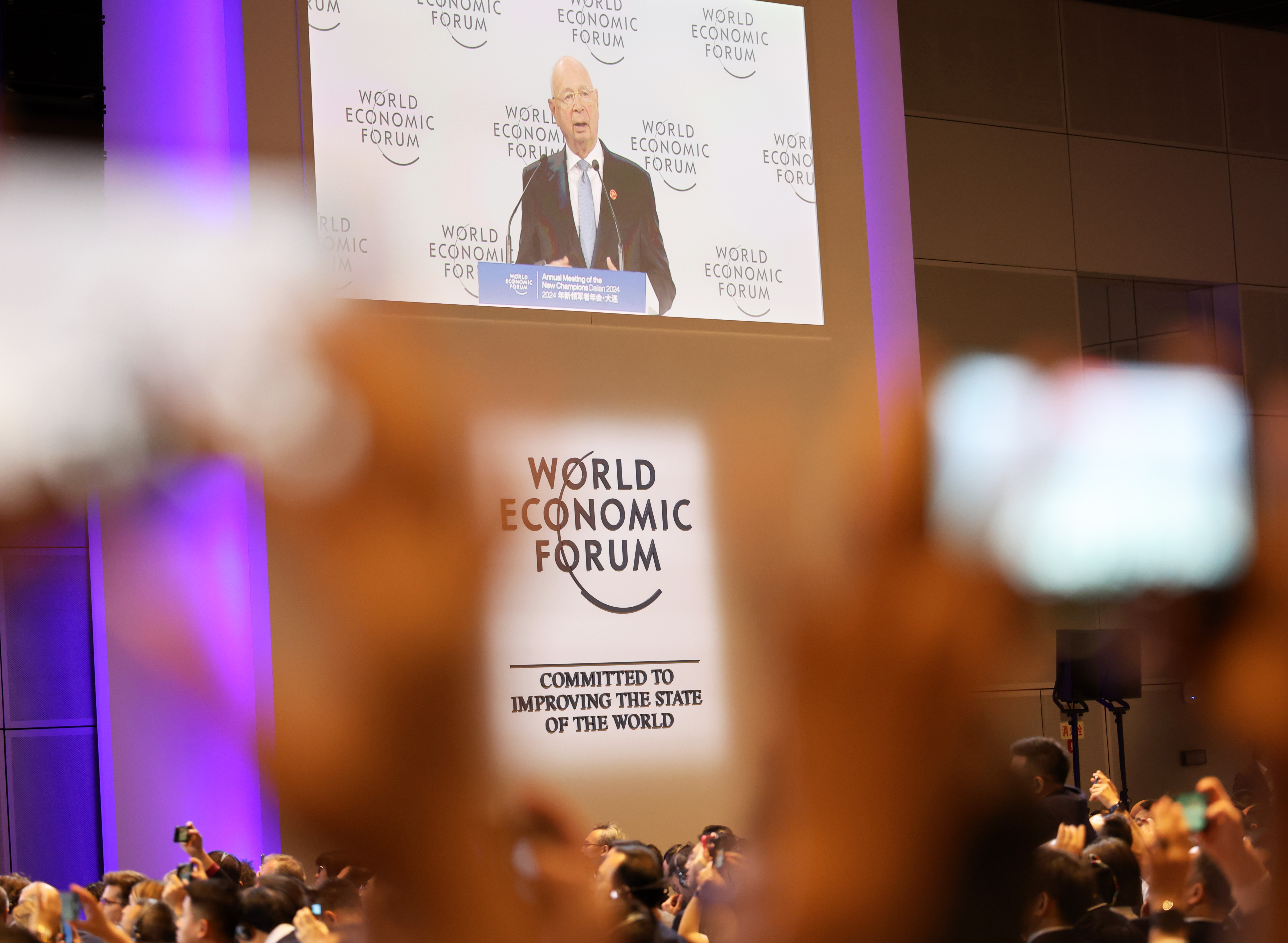 6月25日,夏季达沃斯论坛主会场大连国际会议中心的开幕式现场。新华社记者 李钢 摄