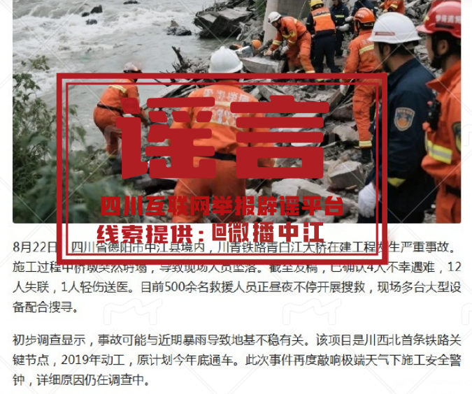 8月22日,某社交平台一账号发文称“四川省德阳市中江县境内的川青铁路大桥事故致4死12失联1轻伤”。