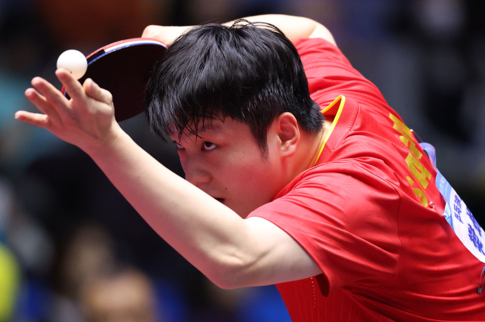 11月18日,上海队选手樊振东在比赛中发球。新华社记者 刘续 摄
