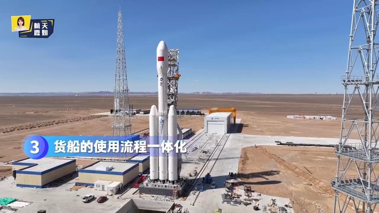 第三个是整个货船的使用流程一体化,传统的是火箭设计火箭的,飞船设计飞船的,而现在把两个流程有机结合在一起,货船和火箭是一起测试,一起走加注流程、发射流程,再一起进行相应的货物装载,使用流程设计更加便捷和便利。
