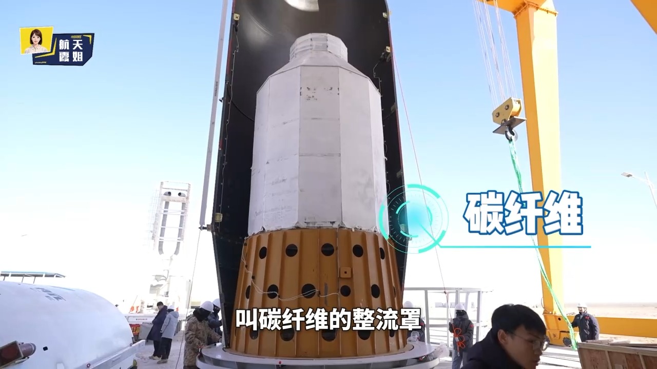 中科宇航力箭二号运载火箭总指挥 杨浩亮:这是一个真实的整流罩,都是采用了碳纤维的整流罩,比传统的铝合金整流罩能轻15%的重量。现在正在进行整个合罩试验,之后做一个整体的星罩组合体的转运试验。每一发火箭的成功背后都经历了无数个试验。