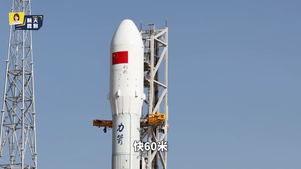 中科宇航力箭二号运载火箭总指挥 杨浩亮:这个发射塔架约60米高。因为火箭采用的是三平一垂的模式,火箭整个水平过来之后,是靠塔架通过4个液压杆直接给它顶起来,能够实现快速发射,过程大概在一个小时之内。
