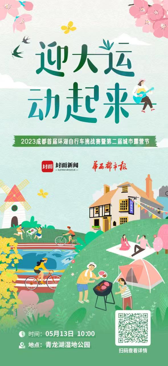 4月27日,在成都大运会即将迎来倒计时3个月之际,由封面新闻、华西都市报主办的“迎大运·动起来”2023成都首届环湖自行车挑战赛暨第二届城市露营节,正式官宣报名通道。