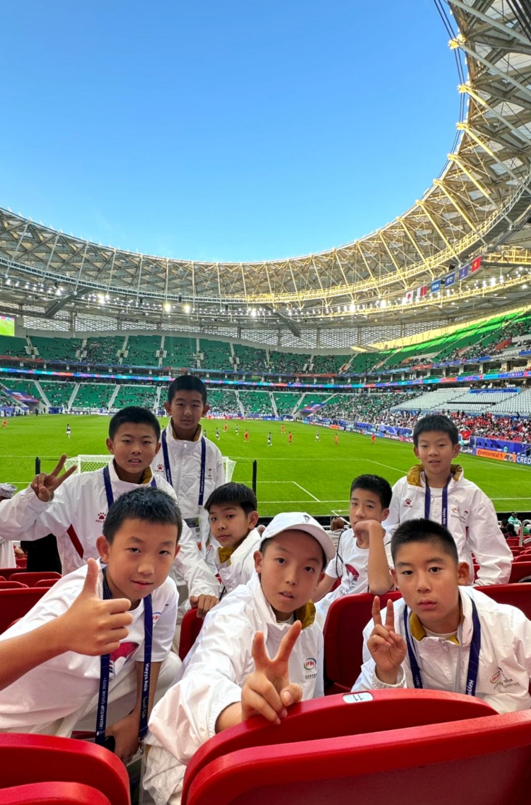 这名小学六年级学生与另外七位同学来自北京市八一学校,受伊利集团邀请,担任卡塔尔亚洲杯护旗手。