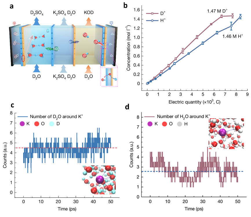 近日,中国科学技术大学徐铜文教授、汪耀明特任教授和李震宇教授团队联合攻关,在氘代化学品制备领域取得重要进展。科研团队创新性地利用双极膜技术,成功实现了低成本、高效率的氘代酸和氘代碱制备,直接把这类比黄金还昂贵的工业原料,生产成本降低了80%,这一成果7月9日在国际学术期刊《自然》在线发表。