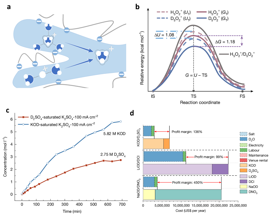基于此原理,研究团队还成功将技术拓展至多种体系,实现了氘代硫酸、氘氧化钾、氘氧化钠等十余种试剂的高效制备,将为医药、新材料等领域带来新的产业机遇。
