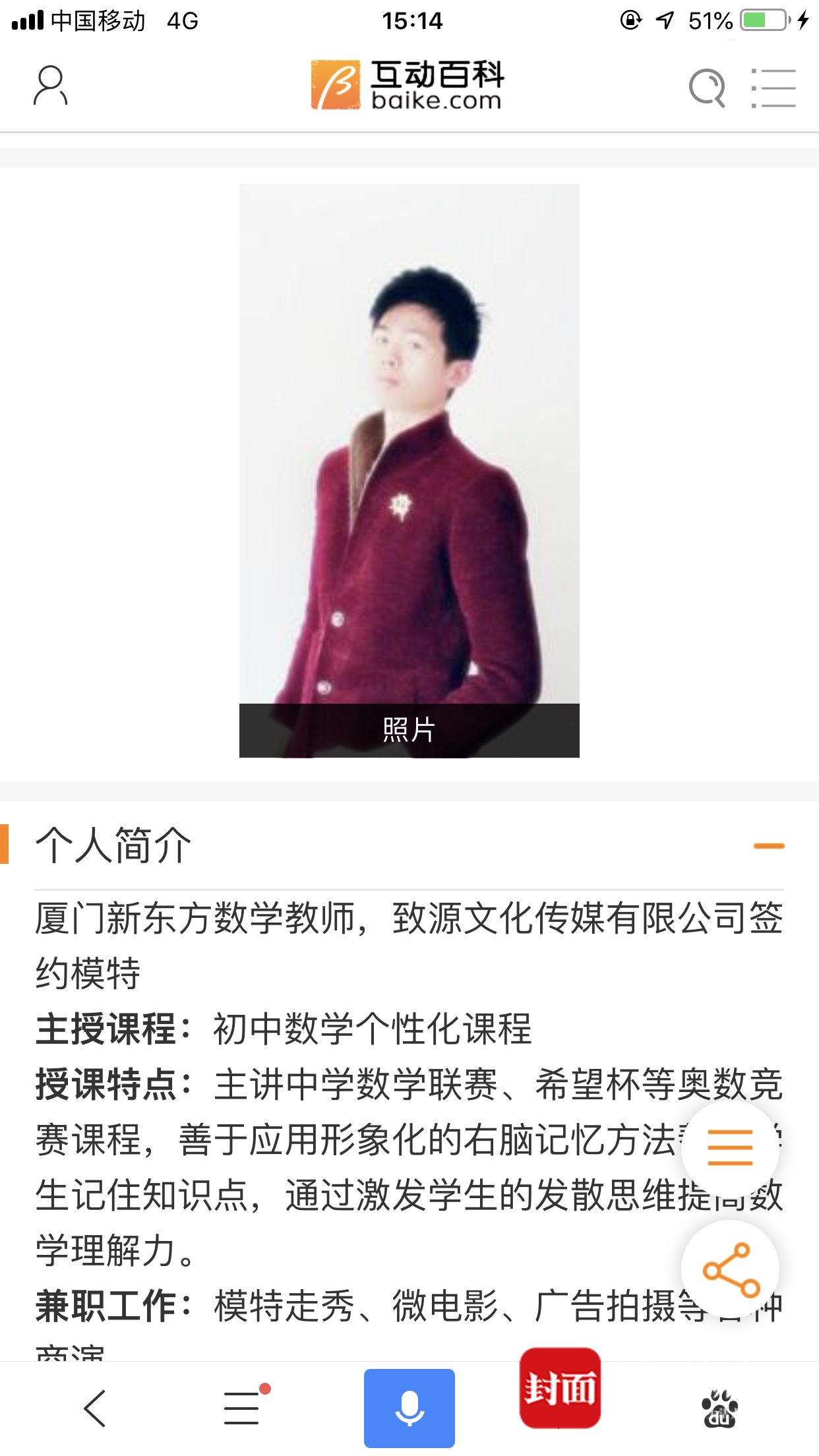 有人认为,该成绩单是12年前的了,为什么郑剑雄会无缘无故的把成绩单发出来呢?他称,自己2014年至今一直在当数学老师。据网络资料显示,郑剑雄在一家知名培训机构当过数学老师,但他本人表示现在已经不在该培训机构,“现在眼睛有点问题,已经辞职几个月,在自己做淘宝模特,偶尔教一下学生。”