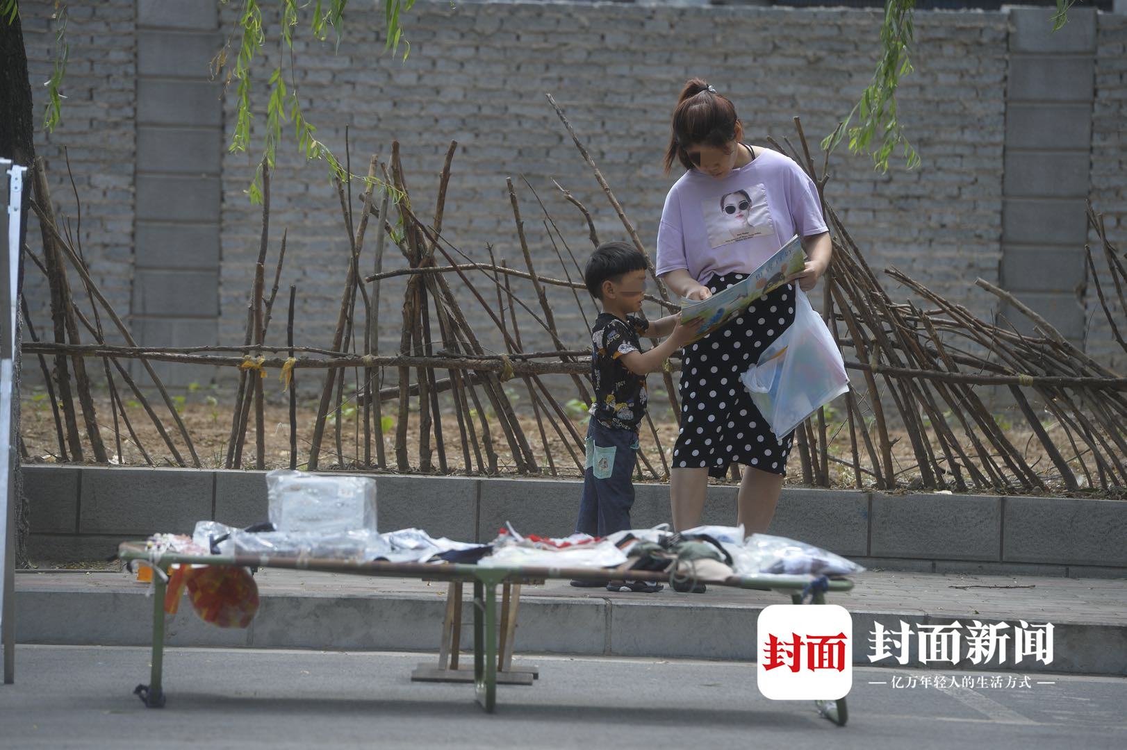 现在跳跳每天7点过就要起床,跟着妈妈去送姐姐读书,接着和妈妈一起去摆地摊。妈妈卖的是一些内衣、袜子等小东西,地摊一旁摆放着跳跳最爱的奥特曼、玩具车。“他也烦了,有时候不乐意一起出摊,要闹。”妈妈不得不一边应付着生意,一边陪儿子玩着。