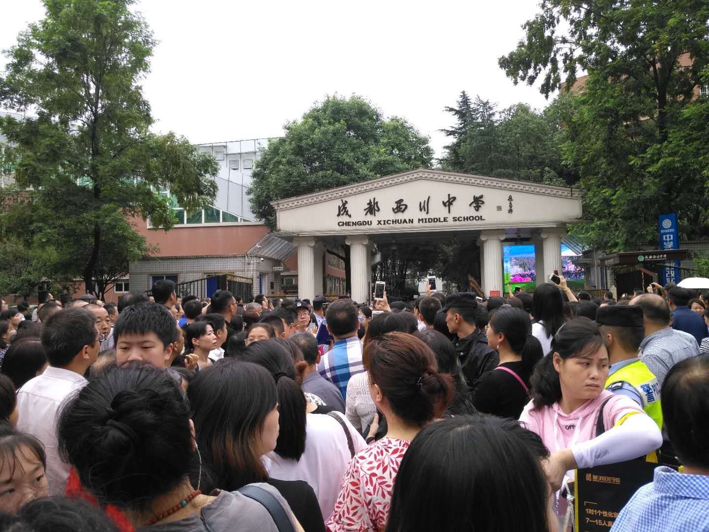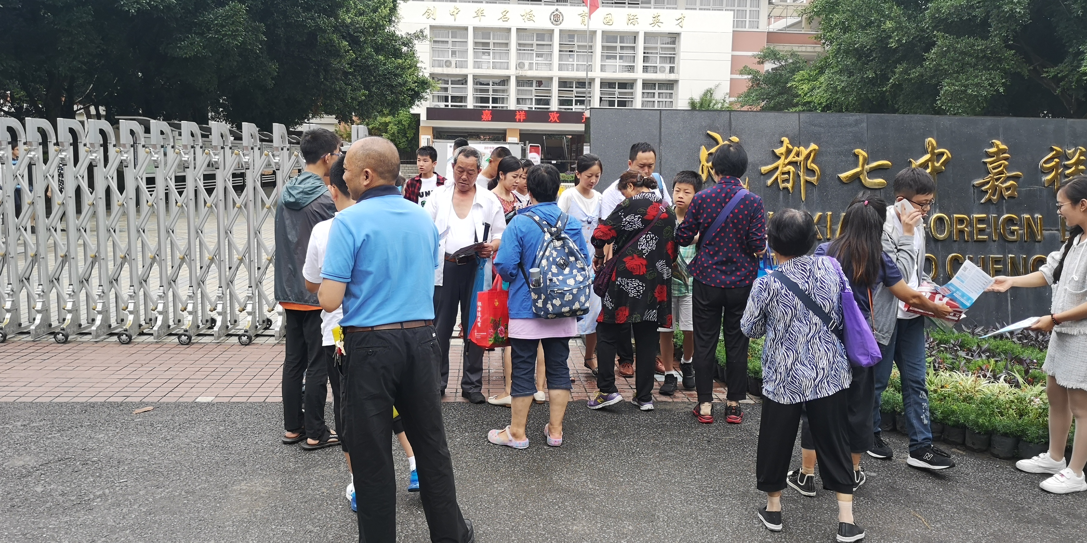 另一所名校,成都市实验外国语学校今年也有近6000人报名,面谈分三天进行。主要由老师提问,学生作答,英语也是考查发音、语感。一位考生告诉记者,他遇到的题目是中学生对新中国建国70年这个历史大事的看法;还有人遇到的题目是,纪念五四运动100周年的话题。