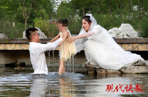 7月11日,一张名为“5岁女孩落水,新郎跳水救人抱给新娘”的照片在网络传播,并刷屏火了起来,有媒体在报道时冠以“最美婚纱照”之称。