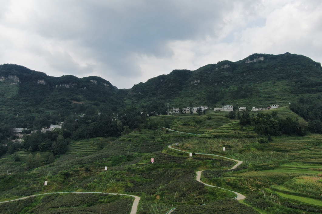 △老龙负责超过200亩果园管理,每天都要在这种高原坡地上“巡园”。六盘水当地政府推动“资源变资产、资金变股金、农民变股东”三变改革,发展高原山地特色农业。红心猕猴桃、刺梨和茶叶等“凉都三宝”,是其代表。